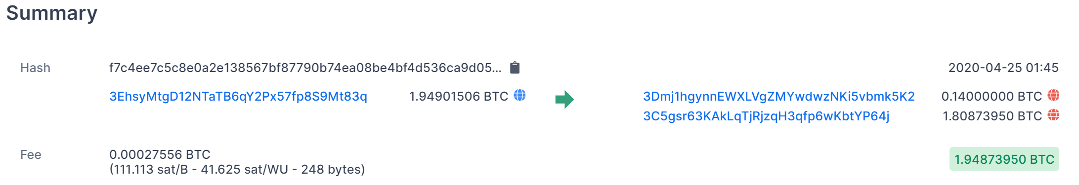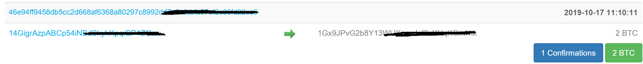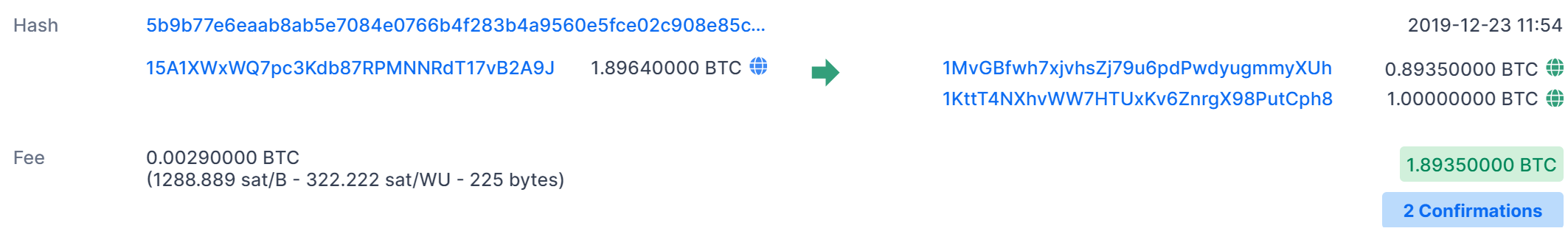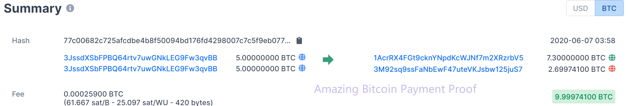 2.38 Bitcoins Payment proof on Februray 11th 2020